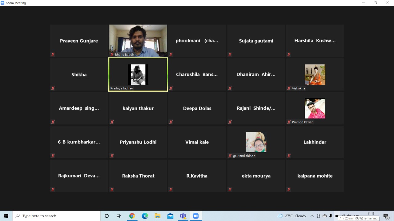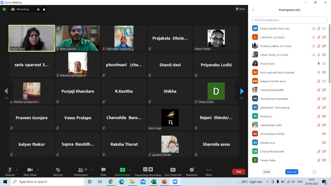It was conducted for two days from 02.00 PM to 3.30 PM and 11.00 AM to 01.00 PM respective days, and participated by 40 to 44 Dalit Human Right Defenders (DHRDs) from Maharashtra, Madhya – Pradesh, Telangana, Chhattisgarh, Odisha, and Karnataka. DHRDs who participated in the training program were affiliated to movements/NGOs/Networks. The training was led by Mrs. Pradnya Jadhav who is a well-known women rights activist and writer from Aurangabad.