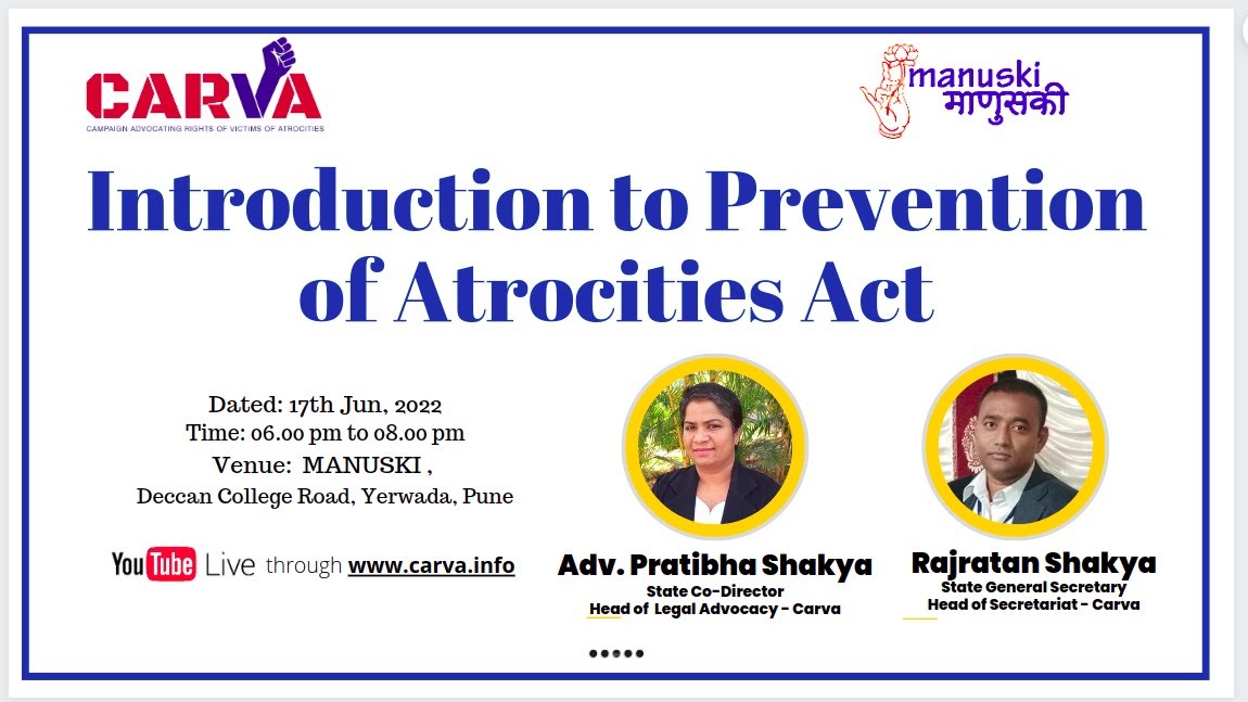 Mr. Rajratan Shakya, state general secretary, and Mrs. Pratibha Sakya, state co-director of CARVA lead the session. The inaugural speech was delivered by Mr. Bhanu Bauddh, Director, Manuski, and the session was concluded by Senior Researcher – Mr. Sangharsh Apte. There were 8 interns of TISS Mumbai and Tuljapur who participated.